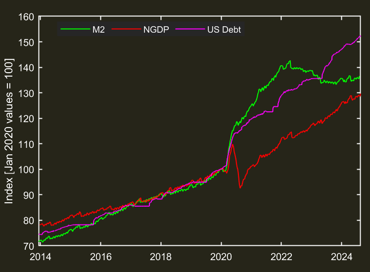 The NGDP curve is wobbly in this region because of reporting lags, but it more or less perfectly increased M2 by the amount that velocity decreased to keep NGDP stable. However, after the pandemic it was likely that velocity would return as the world reopened.