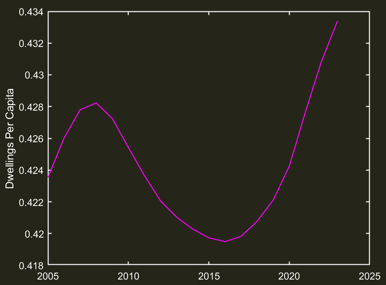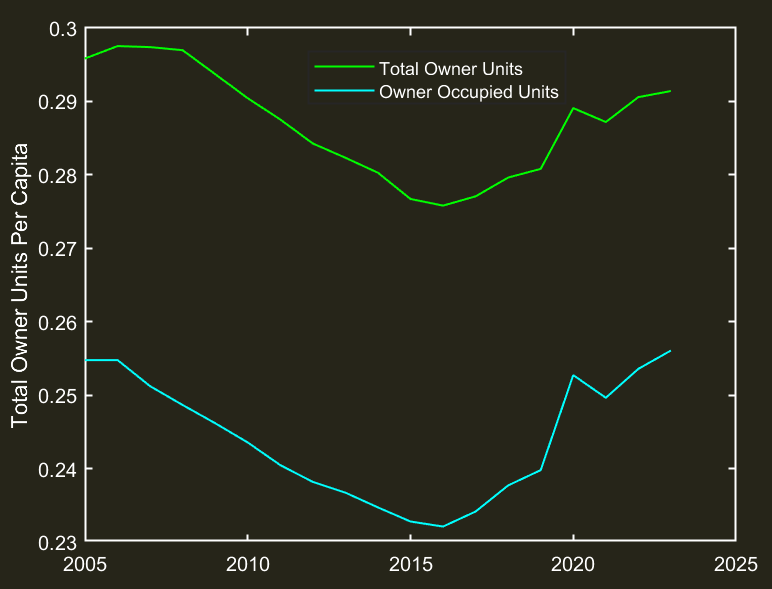 This number includes both owner dwellings and rentals. So let's look at just owner dwellings. We can see that units went down after the great financial crisis, but increased again in 2015 until today. In terms of occupied units, it's also the highest per capita in 25 years.