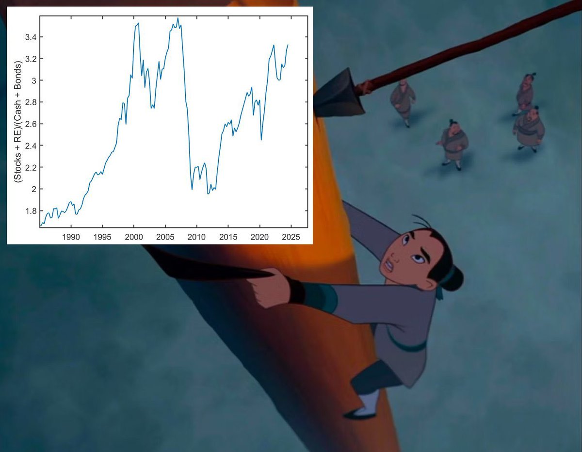 So back to my Disney meme. Typically these bubbles tend to pop once they reach a certain point of leverage. This data is from Q2, so is one quarter old. My estimate is that we are close to the top of previous bubbles. As long as the Fed is not printing...