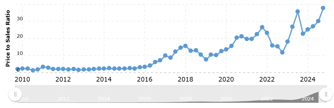 This results in things like $NVDA having a price to sales ratio of over 30x. During the dot com bubble, where the CEO of Sun Microsystems famously wrote a letter to investors asking "what were you thinking?!?" when their P/S hit 10x before the bust.