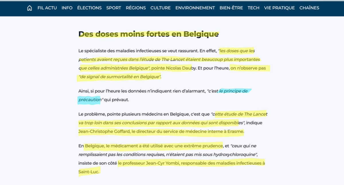 2/n et dans lequel 3 experts confirment qu’il n’y a pas eu de surmortalité attribuable à l’usage de l’HCQ en Belgique. Ils expliquent que les doses utilisées pour l’étude du Lancet étaient bien plus fortes que celles utilisées en Belgique.
