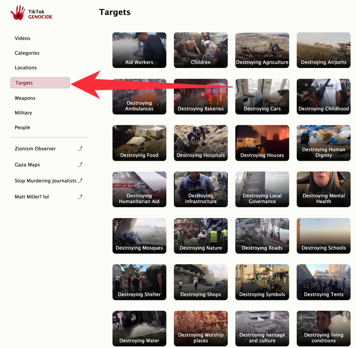 5/ Videos are also categorized by the target Israel was attacking, such as: aid workers, children, agriculture, etc.
