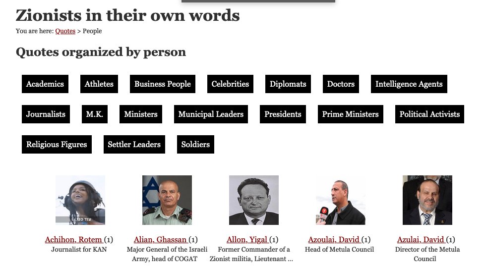 16/ You can view quotes from a specific person, or filter to a category of people. Again, these are all Israeli leaders and public figures.