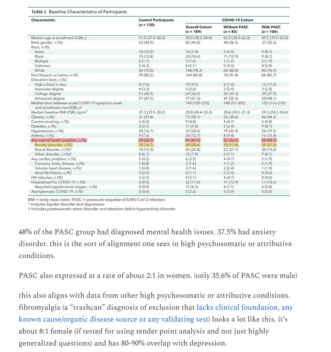 the strongest predictor of "long covid" has always been "anxiety or stress disorders."
