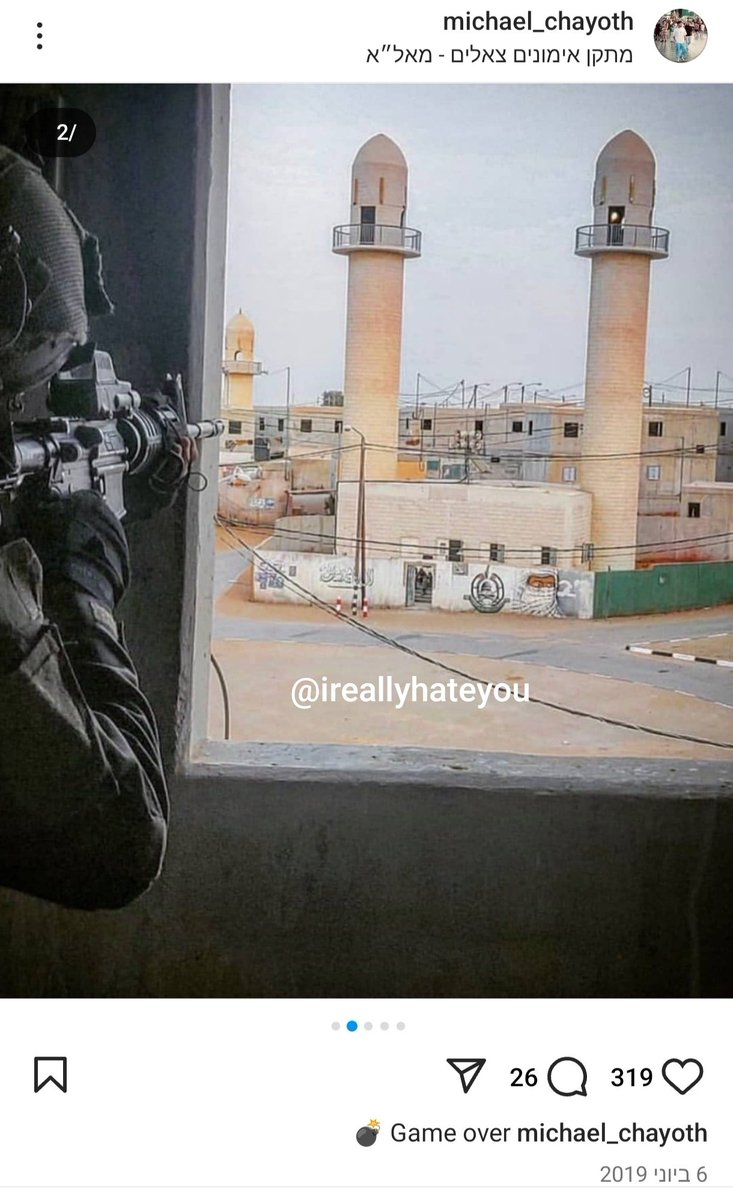 And here's one from his days on regular service: Chayoth pointing a gun towards a mock-mosque in the Tze'elim training camp.