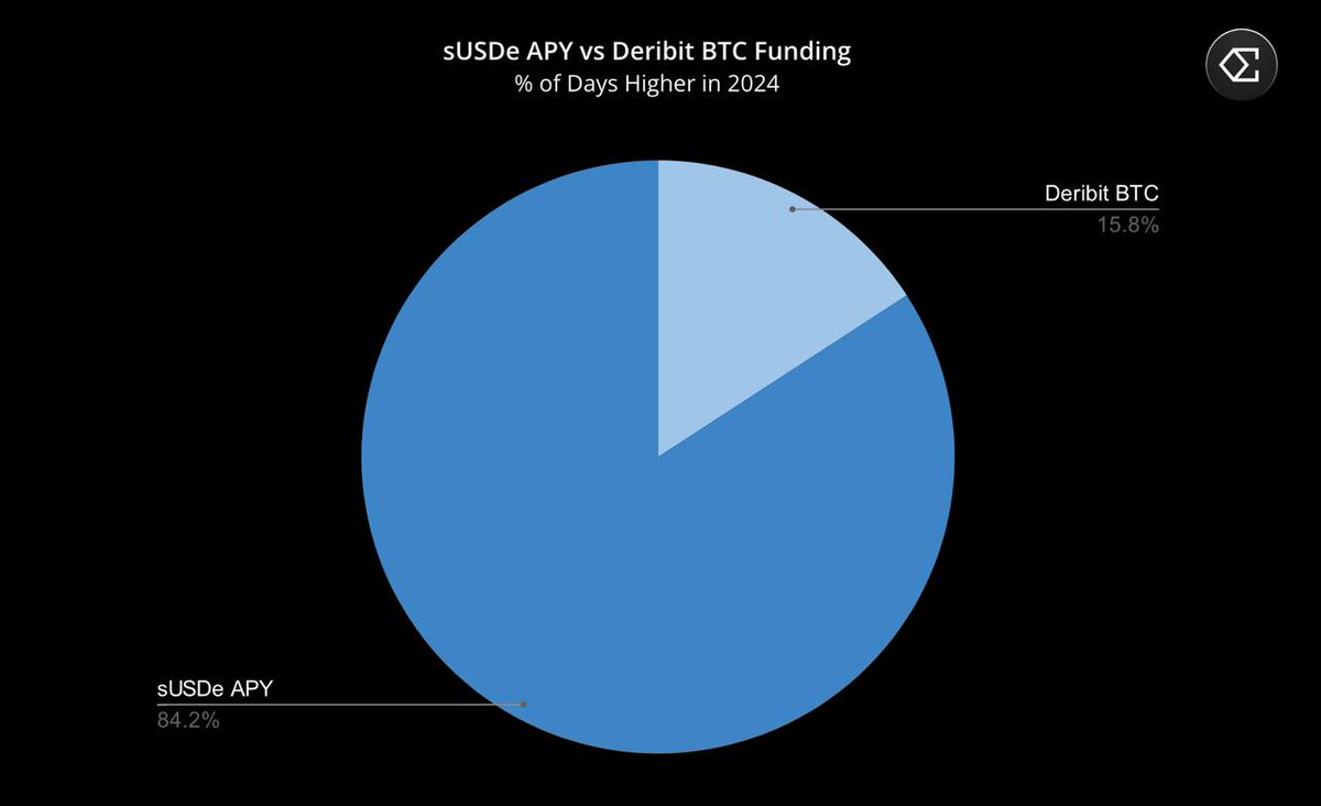 Data below makes this clear where the sUSDe spread to Deribit funding is several % wide, and ~85% of the time in 2024 sUSDe was strictly better than executing the basis on Deribit itself