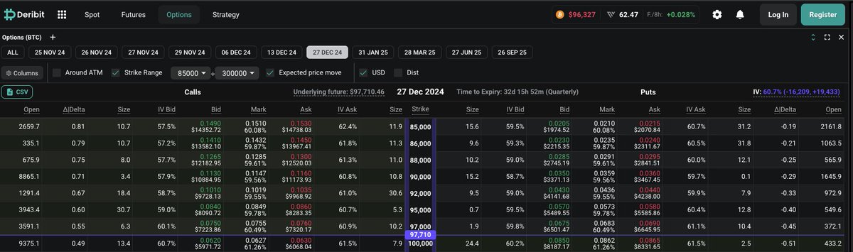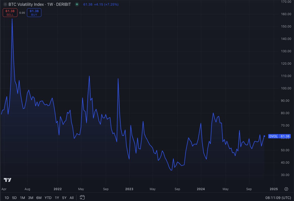 With BTC DVOL trending down since 2021 bull market highs from ~90 in Q1'21 to ~60 Q4'24 this strategy is relatively cheaper and likely continues to cheapen as IBIT option markets mature and IV tightens further