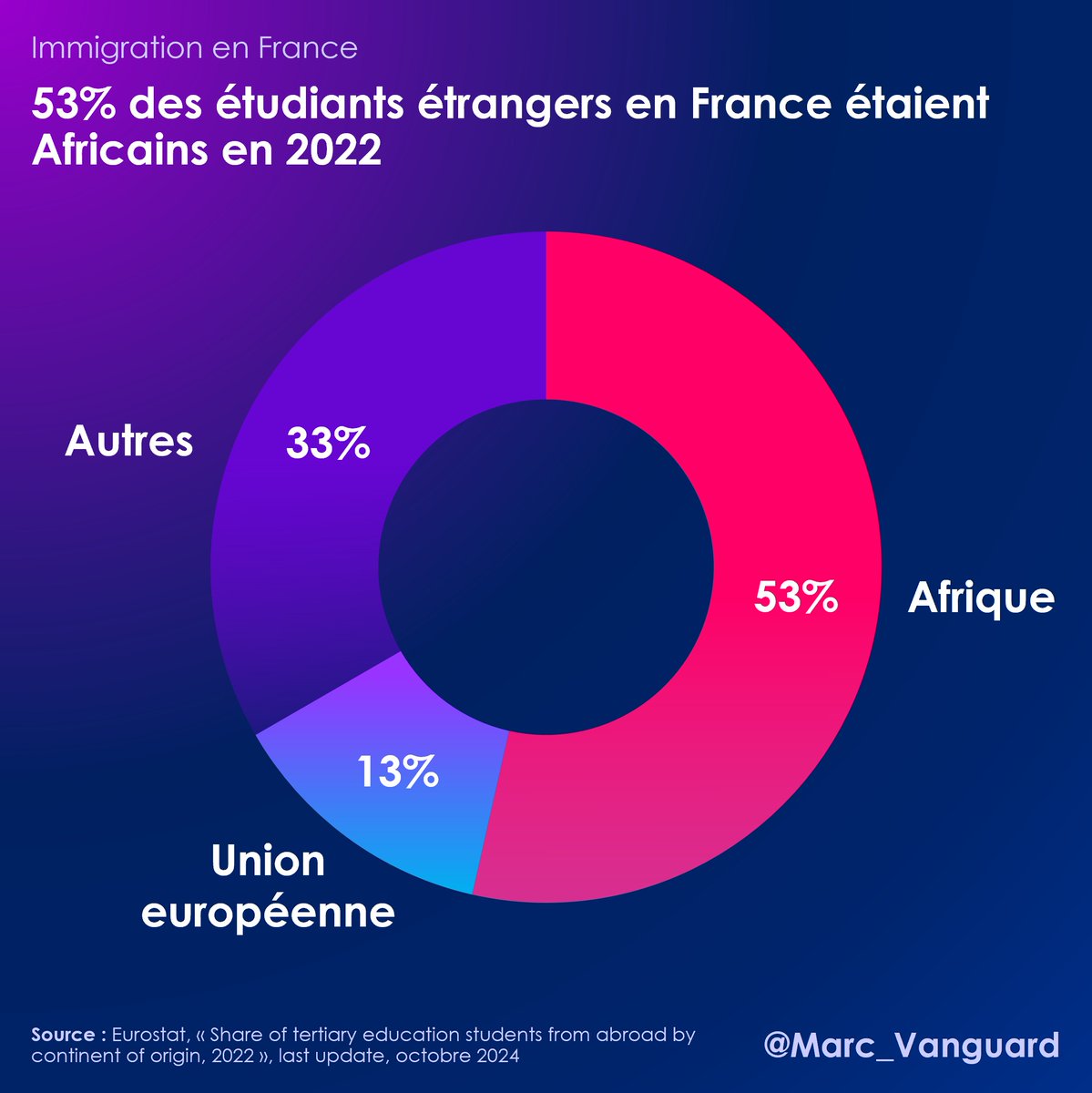 👉 Alors que 53% des étudiants étrangers présents en France sont africains, seuls 13% sont issus de l'UE (Grande-Bretagne incluse) ⬇️