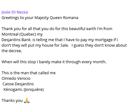 @RebeccaO1340 @botelala Speaking of grifts. Further proof of how brain washed Romana Didulo has her cult members. Yet another loosing their home for non payment of their mortgage.