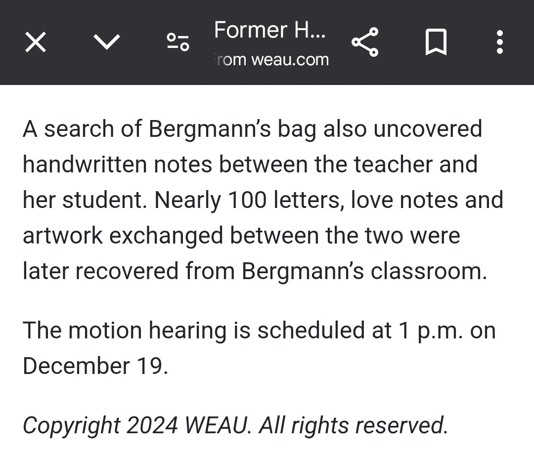 "A search of Bergmann's bag also uncovered handwritten notes between the teacher and her student. Nearly 100 letters, love notes and artwork exchanged between the two were later recovered from Bergmann's classroom."