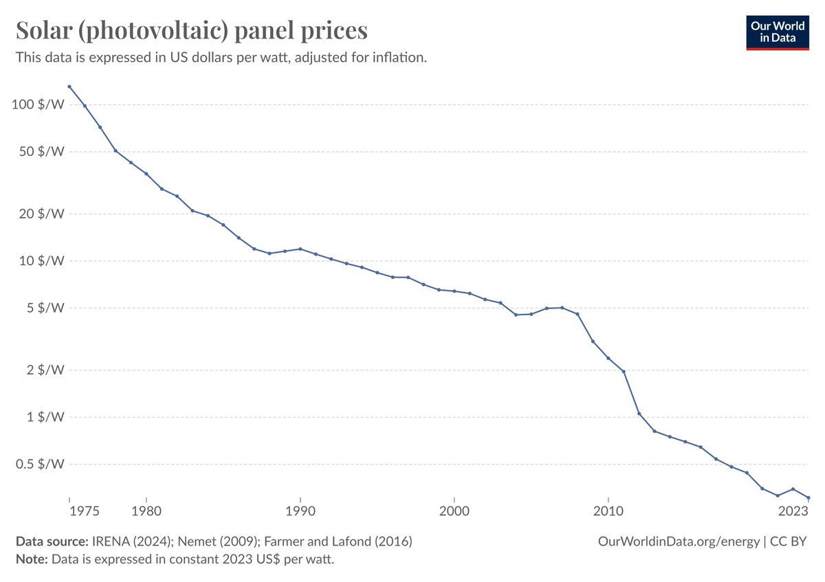 As we build, we learn. This is how solar panel and battery prices have been shrinking at >12%/year for decades