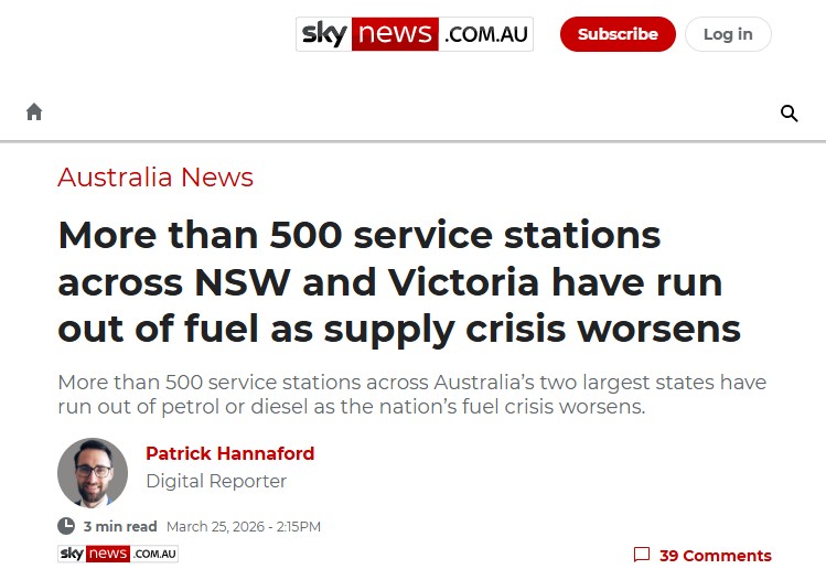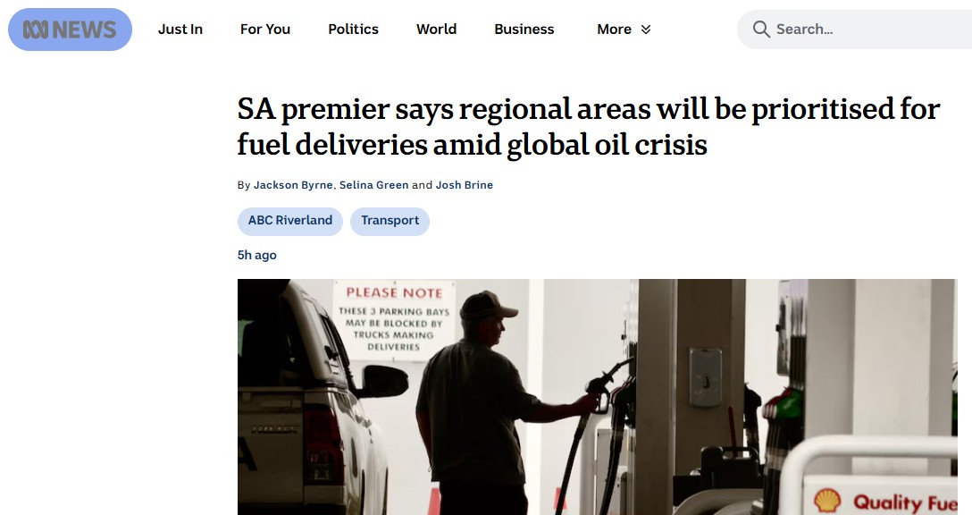 Dall'Australia arrivano video e foto di gente che corre al distributore a fare scorte, pur di non rimanere a piedi nelle prossime settimane. Questo sta accadendo non in un Paese povero, ma in uno dei più ricchi e avanzati del pianeta. Una dimostrazione di due cose: 1) Come