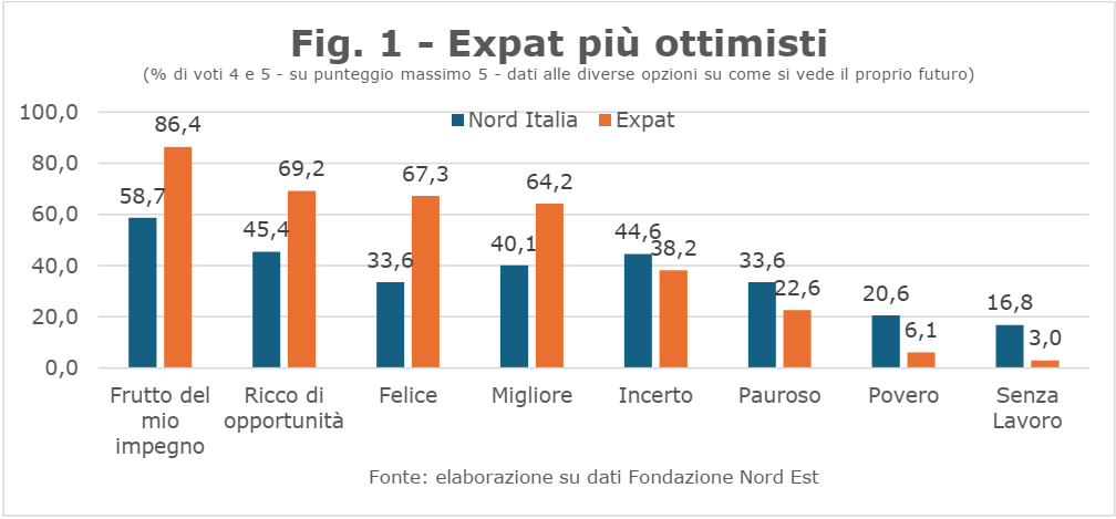 I giovani che fuggono dall'Italia tendono ad essere più ottimisti. Quelli che rimangono qua, nel Nord, invece hanno una visione più cupa del futuro. La scoperta dell'acqua calda potrebbe dire qualcuno... Ma l'indagine della Fondazione Nord Est è