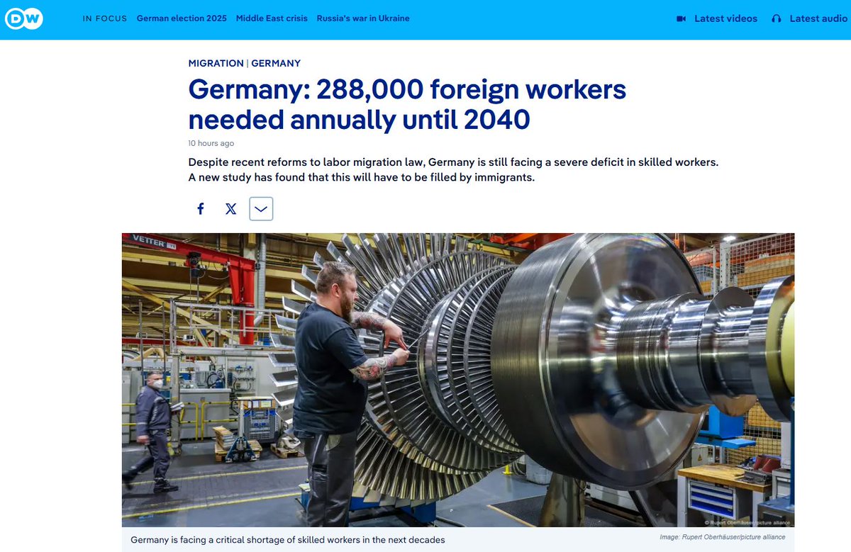 Nel giro di 2 decenni, ma molto probabilmente prima, la situazione lavorativa italiana sarà totalmente insostenibile a causa della crisi demografica. Troppi pensionati, troppi anziani, pochi lavoratori giovani. Questo senza flussi migratori. Per