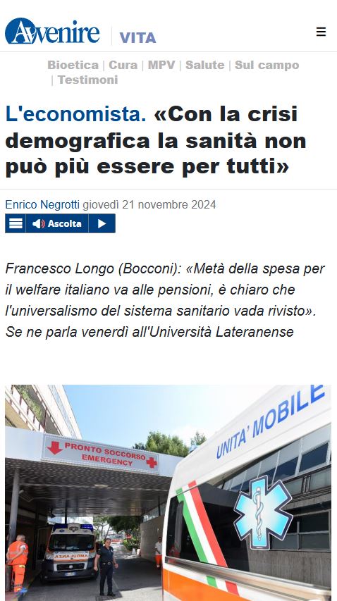 istituti, mass media e partiti, che preferiscono occuparsi di altro. Ed è veramente incredibile, considerato che la crisi demografica stravolgerà completamente l'Italia da qui al 2050. Cecità totale.