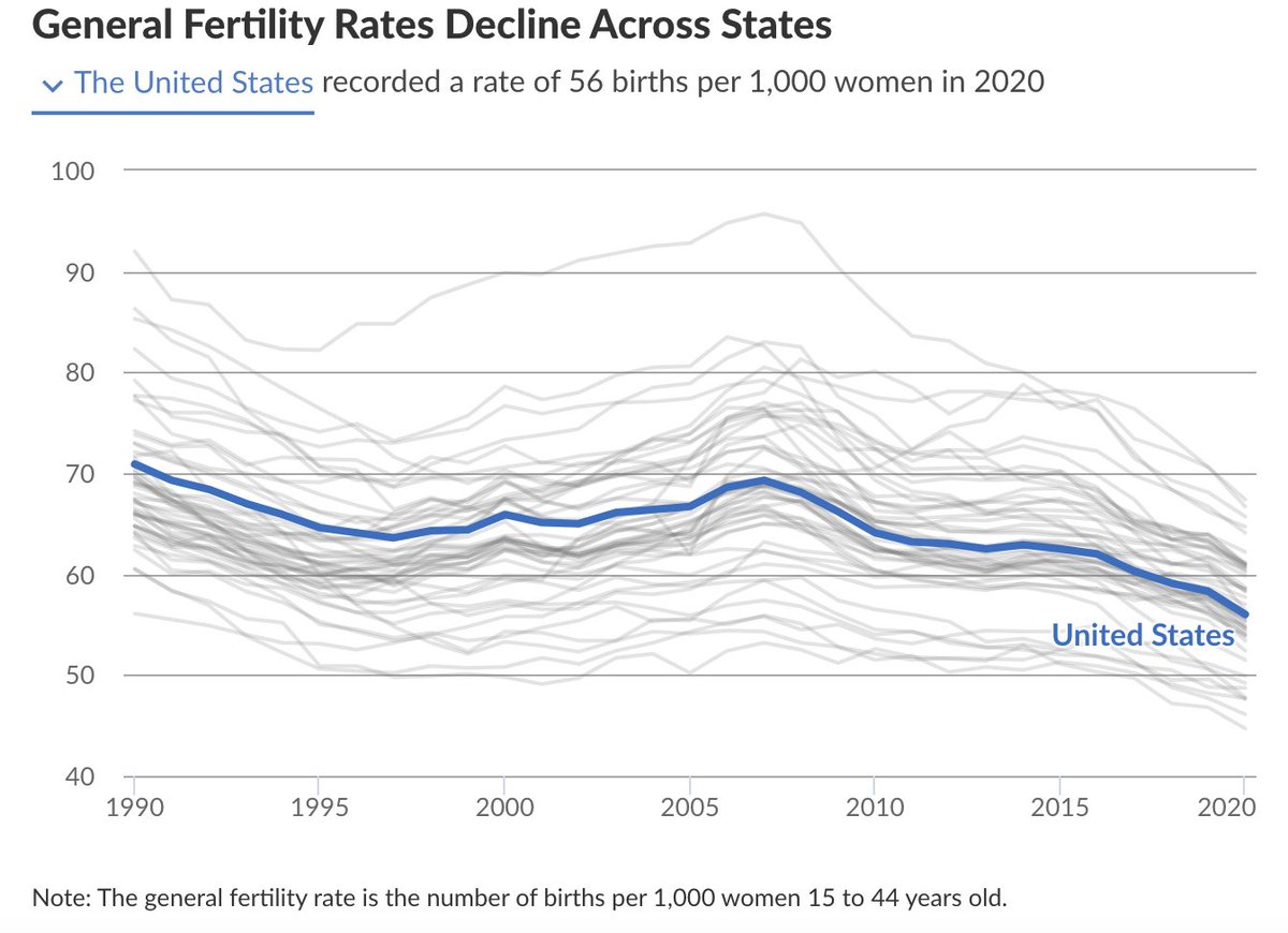 In recent budget proposals or revenue forecasts, several states noted declining fertility. California called out the combination of early retirements that have taken place during the pandemic and lower fertility and migration rates... lao.ca.gov/Publications/R…