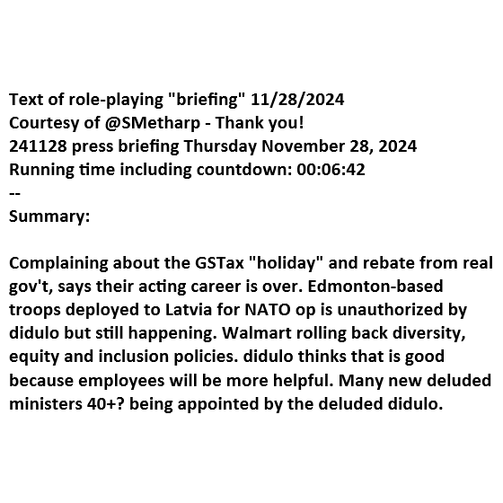 @RebeccaO1340 Press 'briefing' re-run. Only about 6 minutes today. @SMetharp graciously did audio-to-text for us, which is greatly appreciated. Summary: