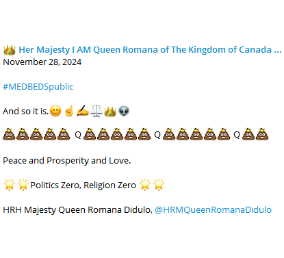 @RebeccaO1340 @SMetharp @kuslak Queen Romana posted this nonsense post today. I guess medbeds are here, for the public. Or not. I bet it's not.