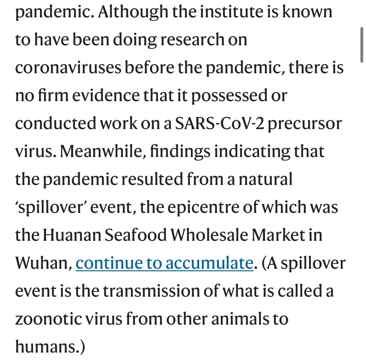 The authors copy a favored tactic of NY Times, which is to associate a lab origin of COVID with Donald Trump, as if that makes the idea disreputable. They also fail to mention there was never a transparent lab audit of the Wuhan Institute of Virology. 2/