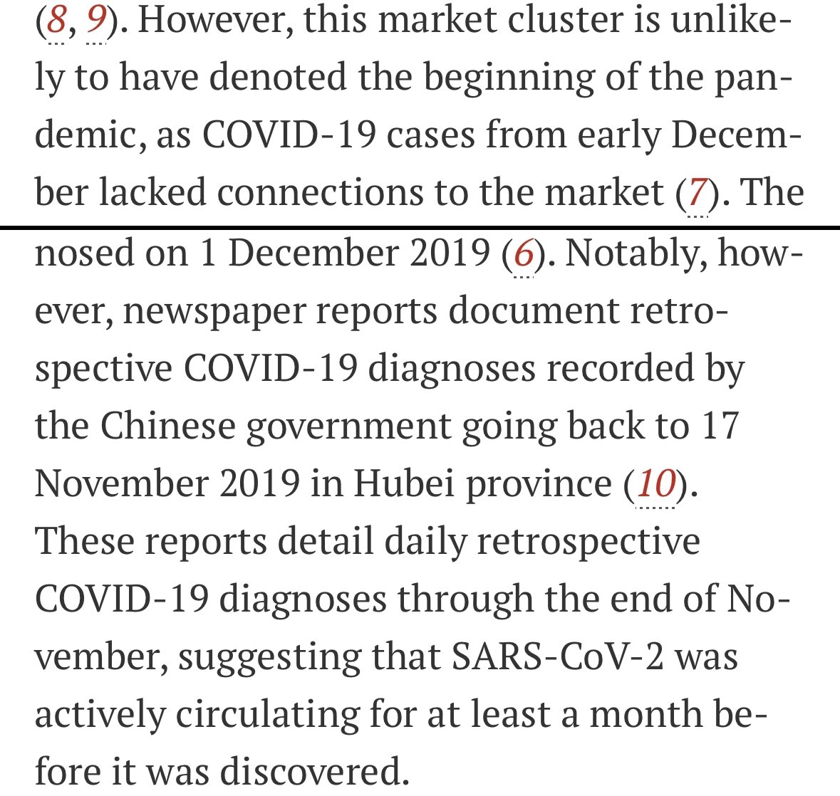 In Pekar 2021, the authors (many of whom were later authors on Pekar 2022) cited the South China Morning Post’s report of a COVID case dating back to Nov 17, 2019 and at least 9 COVID cases that month as evidence COVID was spreading prior to the Huanan market outbreak. 3/
