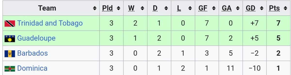 Z tym, że 🇧🇧Barbados przed spotkaniem miał bilans -1, a 🇬🇩Grenada +2. Więc żeby wyprzedzić rywali, 🇧🇧Barbados musiał ten mecz wygrać przynajmniej dwoma bramkami.
