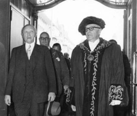 3/4 Das Kabinett Adenauer beschließt 1960 den Anführer der Frankfurter Schule, Max Horkheimer, in einen Ausschuss für staatsbürgerliche Erziehung zu berufen. Dort kann Horkheimer die BRD-Bildungspolitik nach links ziehen und Patrioten als „autoritär“ pathologisieren.