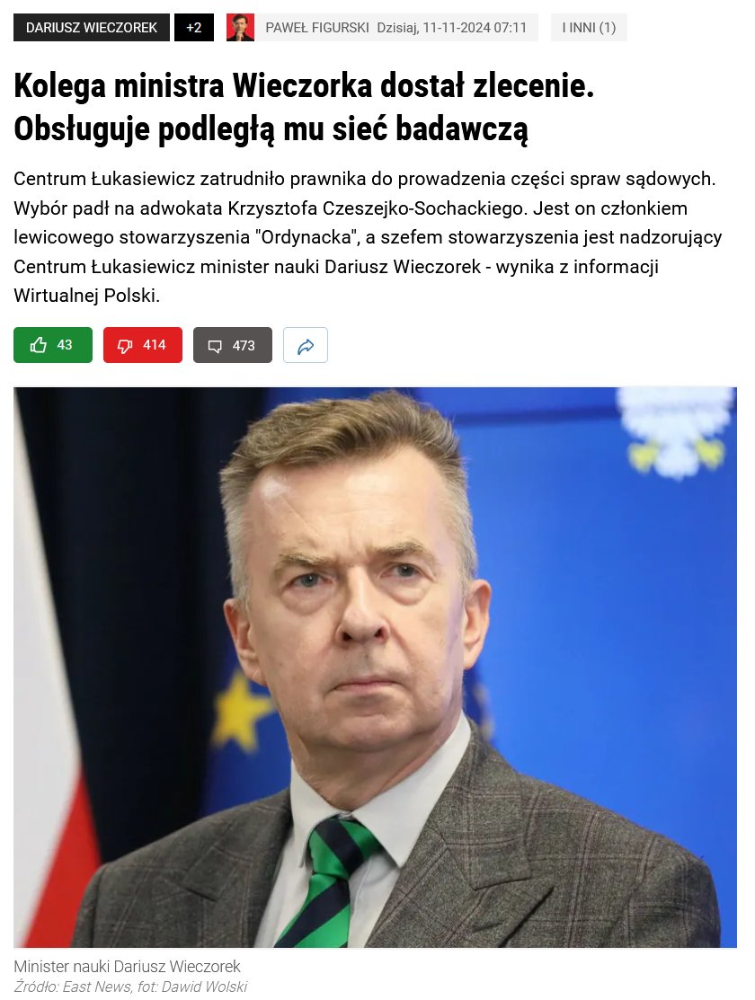 W bardzo ciekawym tekście @wirtualnapolska opowiada dzisiaj piórem @p_figurski o zleceniu, jakie otrzymał kolega ministra @wieczorekdarek mec. Krzysztof Czeszejko-Sochacki. Pora na krótki życiorys, więc jedziemy: