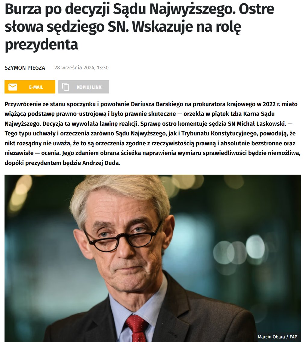 Te niezwykle istotne słowa zawarł sędzia Sądu Najwyższego Michał Laskowski w swojej monografii "Uchybienie godności urzędu sędziego jako podstawa odpowiedzialności dyscyplinarnej". Panie sędzio, proszę wziąć swoje własne słowa do serca. Bo jest trochę jakby niezręcznie, gdyż...