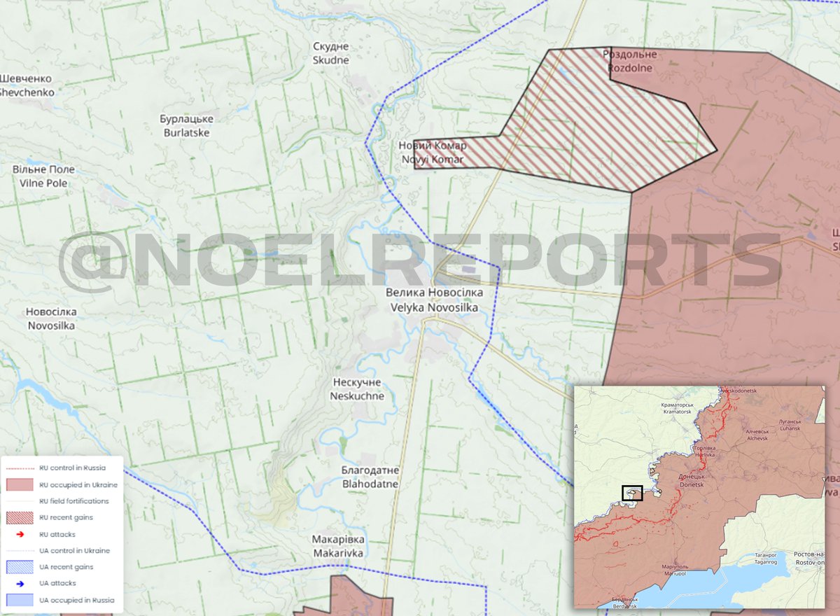 Bad news coming from this direction. Russians were located in Novyi Komar, cutting the highway to Pokrovsk and seriously putting remaining Ukrainian forces near Velyka Novosilka at risk. The AFU looks to have retreated beyond the Mokryi Yaly river.