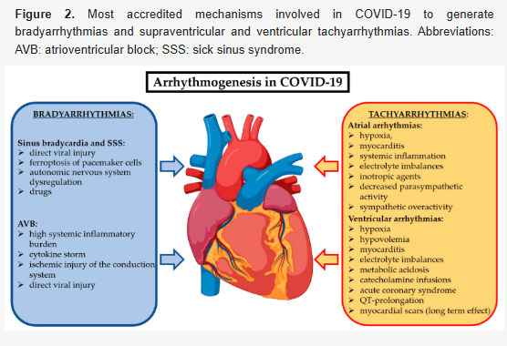 ➡️During SARS-CoV-2 infection, the occurrence of cardiac arrhythmias recognizes variable pathophysiologic mechanisms, which may interact and increase the chance of arrhythmic manifestations.