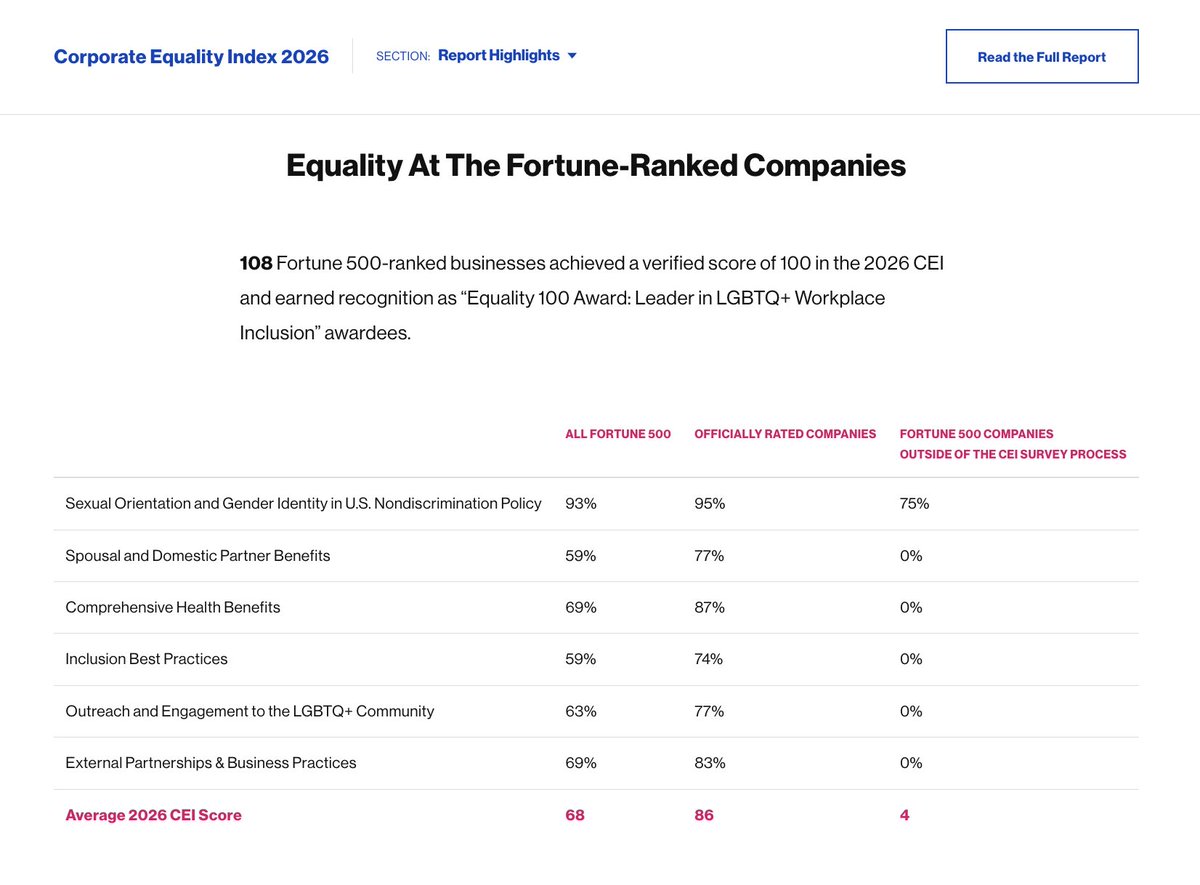 HRC publishes a "Corporate Equality Index" rating companies on their pro-LGBTQ policies and stances. ESG investors used the survey as a benchmark for investment. HRC is on the back foot now, but 108 of the Fortune 500 companies still get a perfect 100 CEI score.