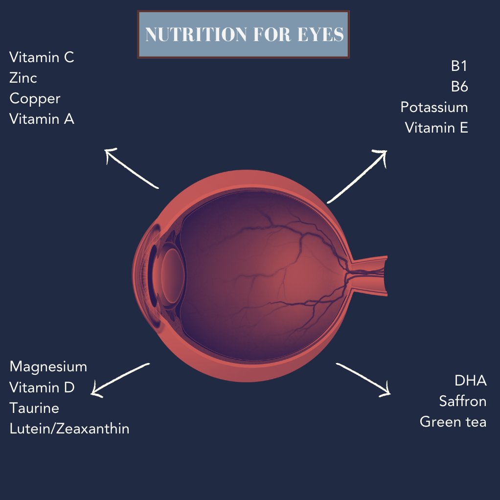 → Magnesium: Ciliary muscle relaxation, blood flow, reduce oxidative stress in retina.