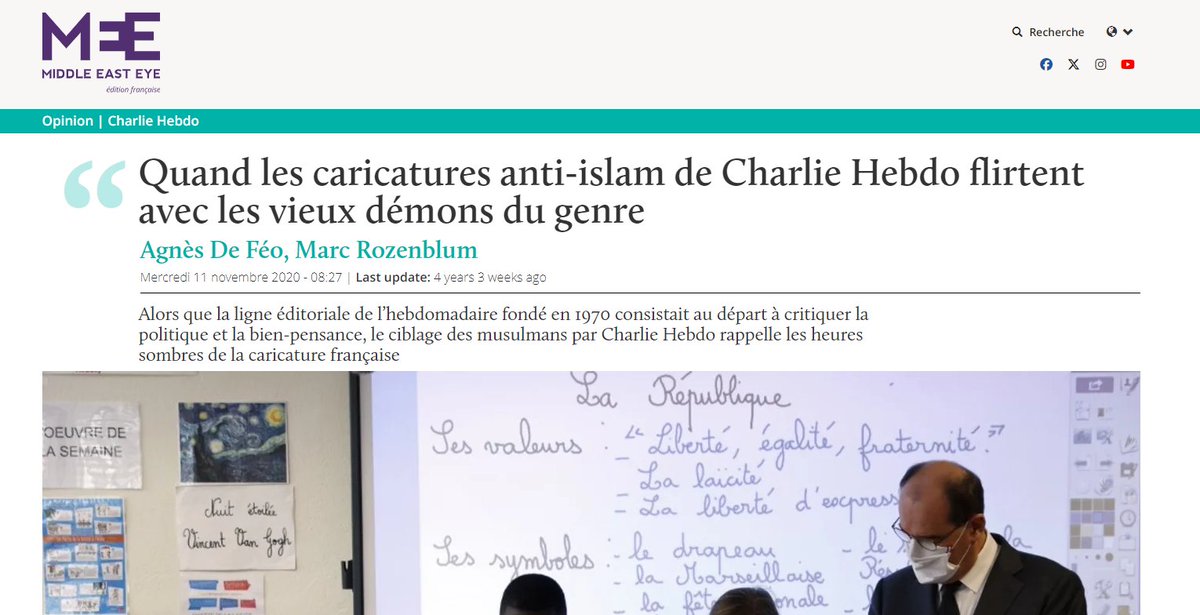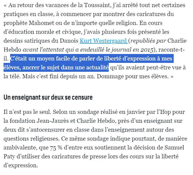 Bon déjà justement c’était exactement le sujet, de discuter de ces caricatures avec les élèves, pas les « montrer ». C’est un peu le but. Il n’est pas interdit d’être choqué. C’est exactement ce que Charlie Hebdo a lancé post 2015 avec dessinezcreezliberte.com
