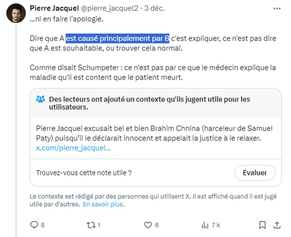 Donc non dire que son assassinat est « principalement » causé par avoir montré une caricature potentiellement islamophobe (il a le droit à son avis), c’est exactement justifier un acte.