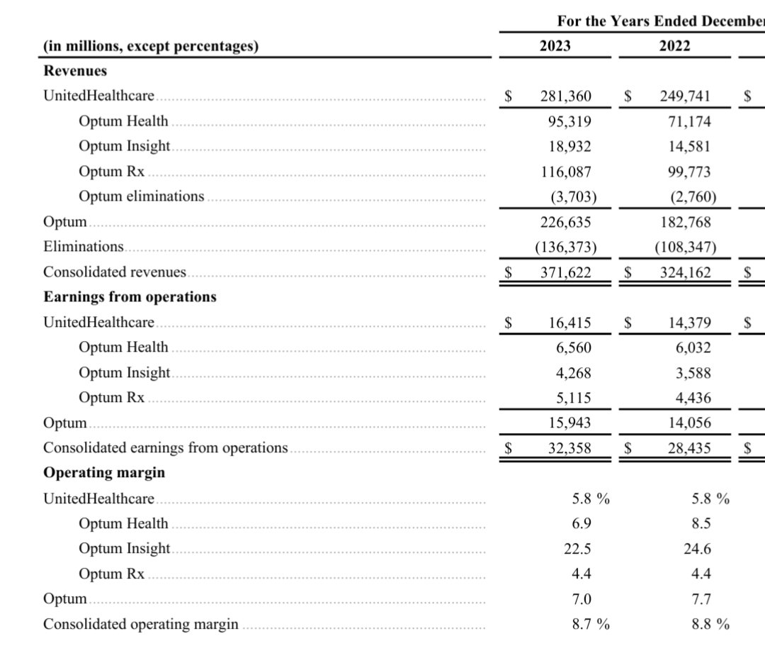 Furthermore operating margins on their core insurance and prescription drug plans are less than 6%, that's like "very good grocery store" margins, not even "shitty software company" margins