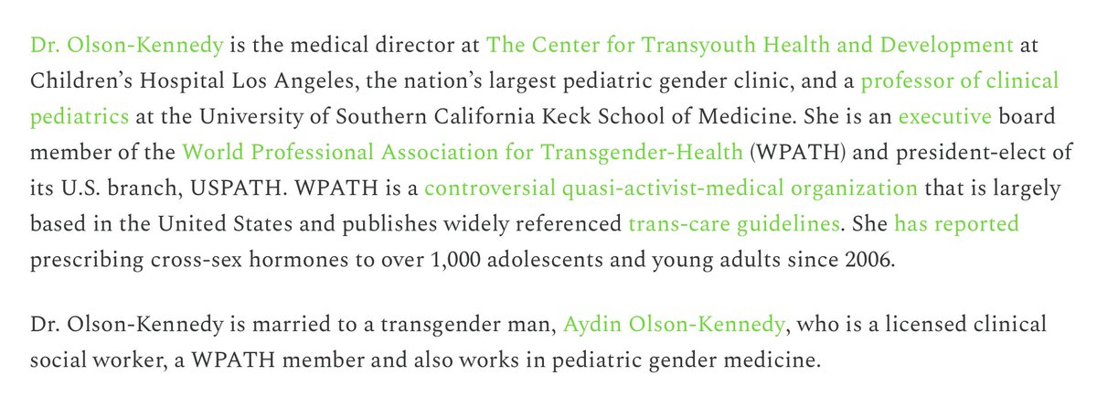 Dr. Olson-Kennedy is married to a transgender man,Ā Aydin Olson-Kennedy, who is a licensed clinical social worker, a WPATH member and also works in pediatric gender medicine. benryan.substack.com/p/the-wpath-fi⦠benryan.substack.com/p/leaked-wpathā¦