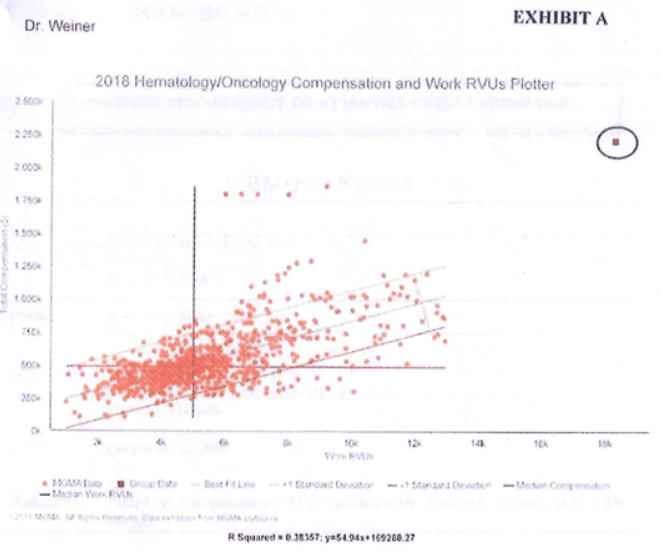 11/ His patient load was “exceedingly high” & his compensation “a significant outlier." The pay and workload of 150,000 doctors were presented as dots in a graphic. That lone dot up in the corner? That’s Weiner...