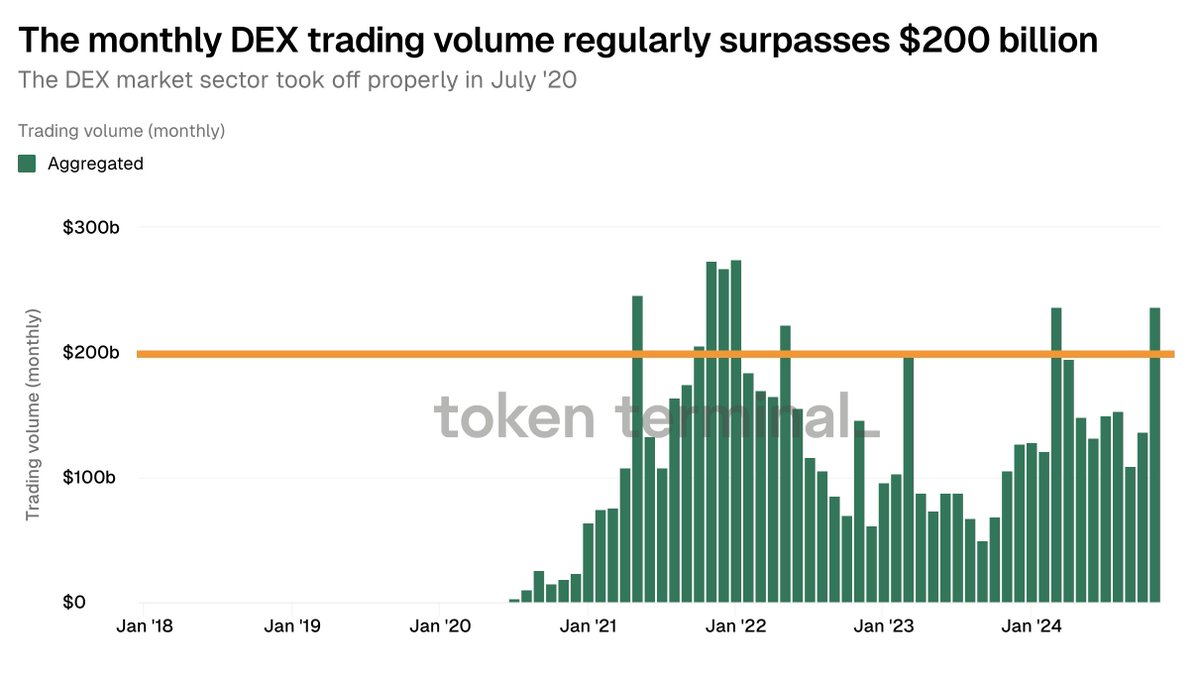 ▪️ The monthly DEX trading volume regularly surpasses $200 billion