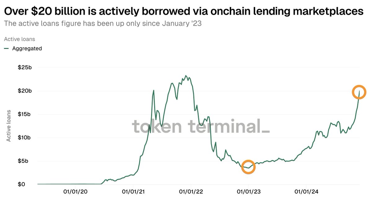 ▪️ Over $20 billion is actively borrowed via onchain lending marketplaces