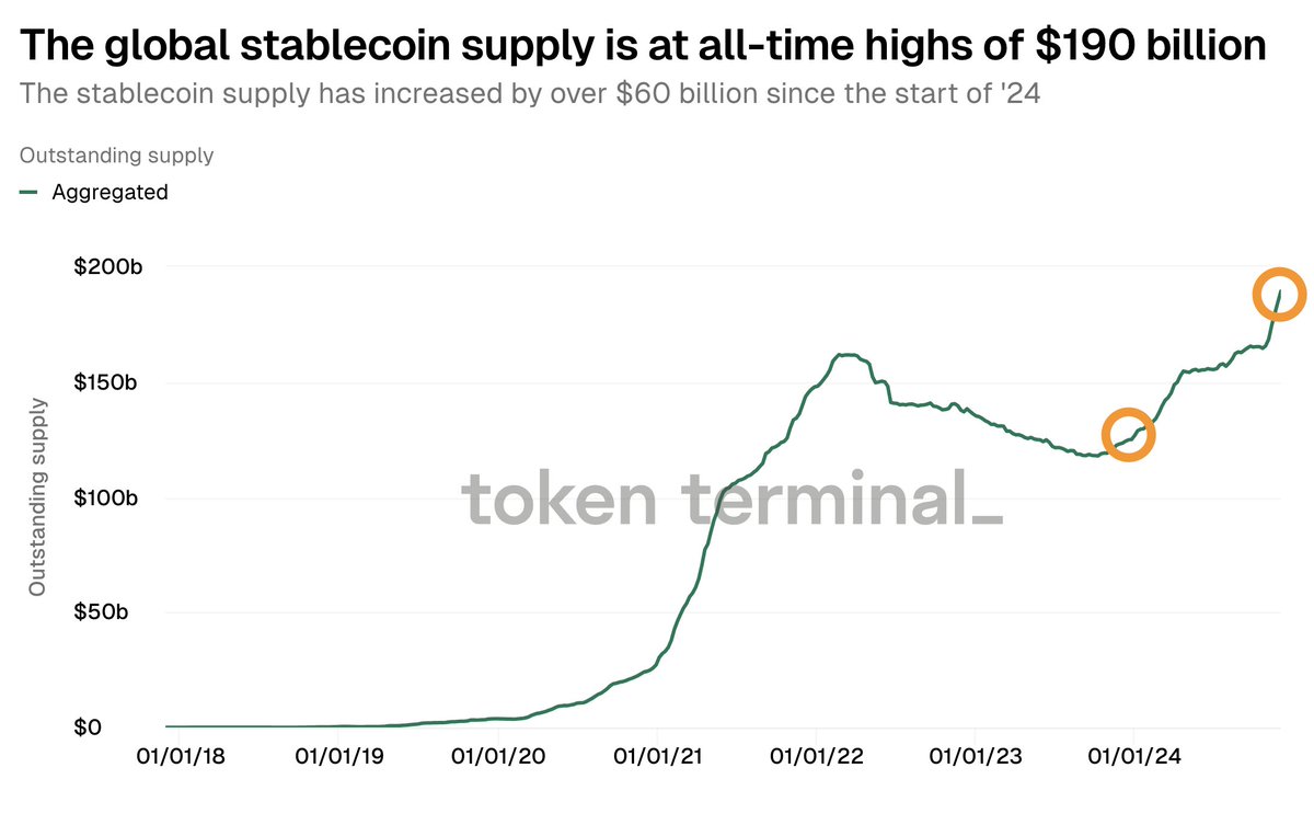 ▪️ The global stablecoin supply is at all-time highs of $190 billion