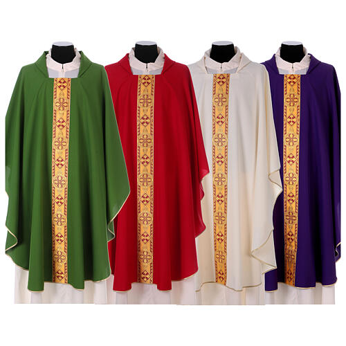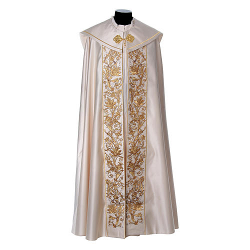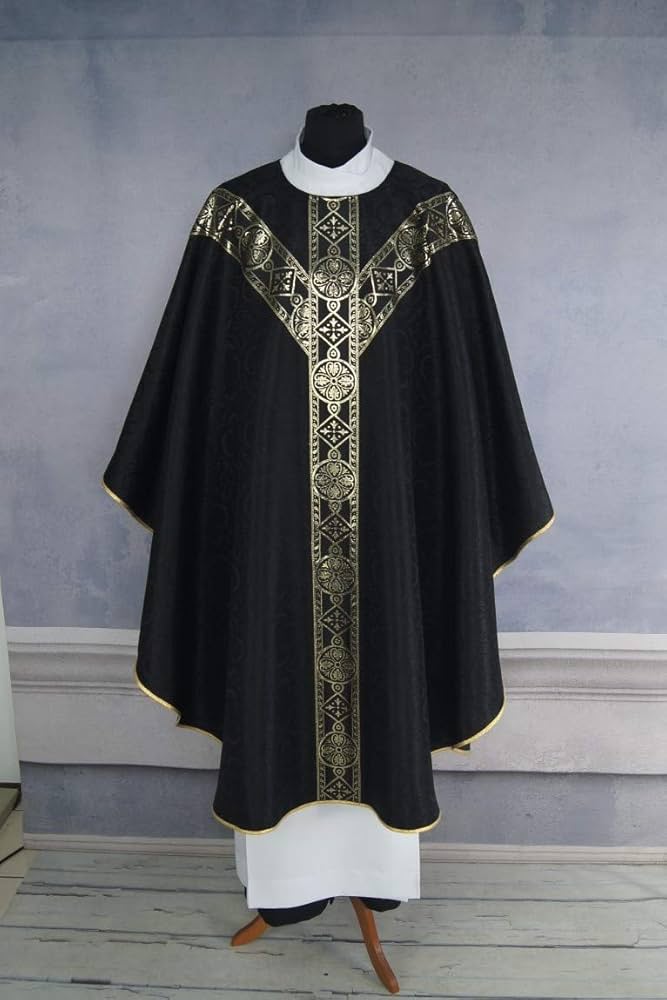 Pour la messe, le prêtre revêt la chasuble : large vêtement ample évoquant la charité du Christ qui englobe tout. Pour les autres office, il revêt la chape qui est une sorte de cape noué aux épaules par une broche, ce que portait Mgr Ulrich hier.