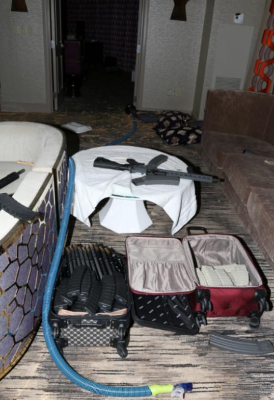 If Paddock has 17 suitcases from the MGM surveillance footage, but the LVMPD and FBI only find 11 at the crime scene, that means 6 suitcases have gone missing in the days leading up to the shooting.
