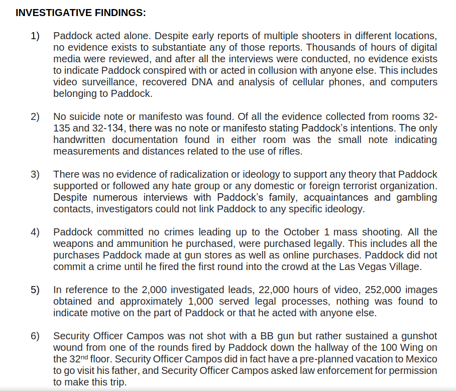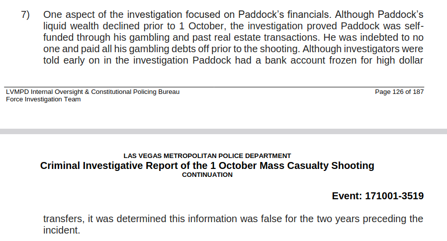 Lets start with the "Criminal Investigative Report" which I will refer to as "FIT report" from the LVMPD (link: ) which is the final report from the Force Investigation Team lvmpd.com/about/news-eve…