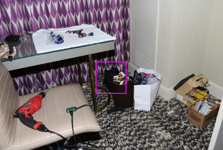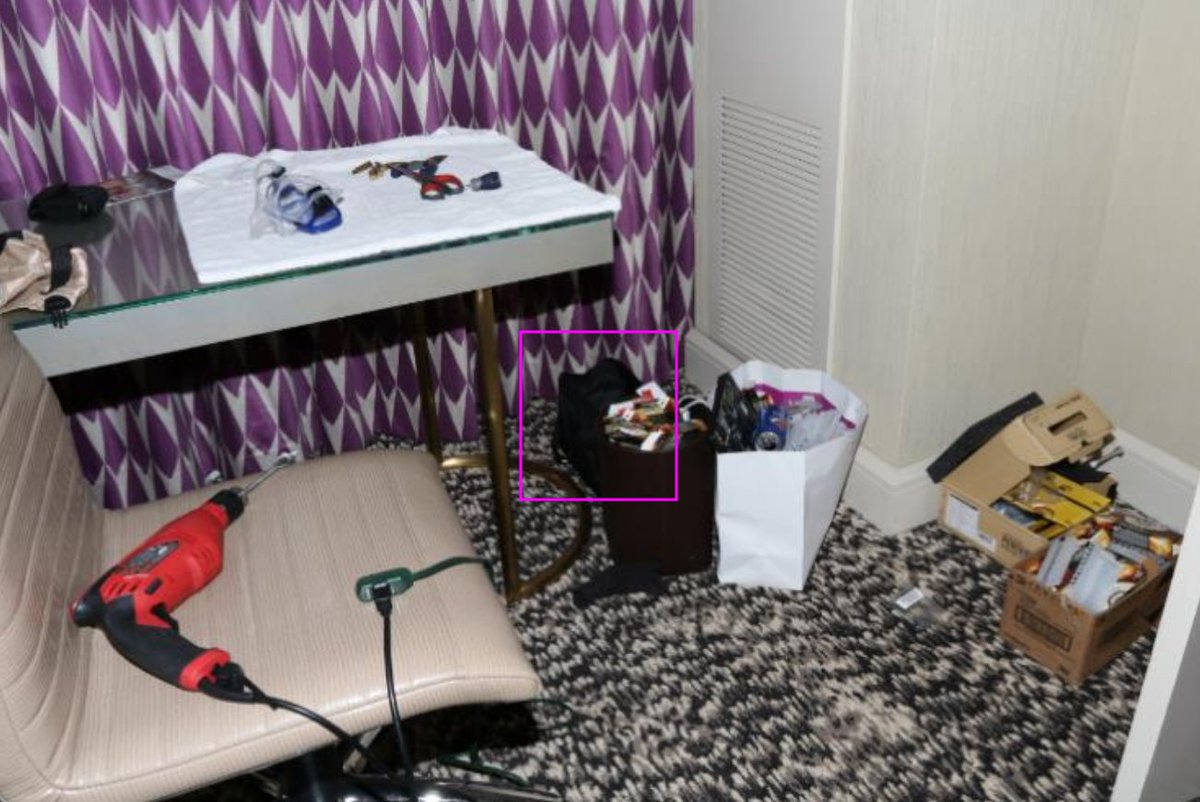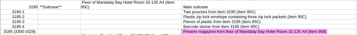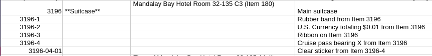 Lastly, C3 contains 3 items, 2 of which are missing from images. The one visible suitcase in C3 is in close proximity to Paddocks body and the only item described by the FBI as "from floor/near window".
