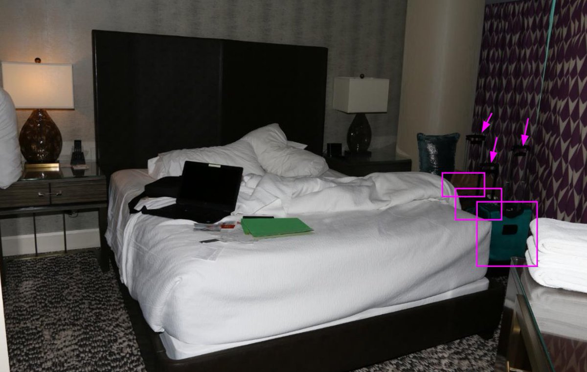 One could argue these are the suitcases next to the bed, but the descriptions and contents of the suitcases are inconsistent between the FBI data and the description from the FIT report.