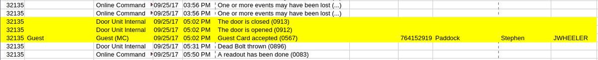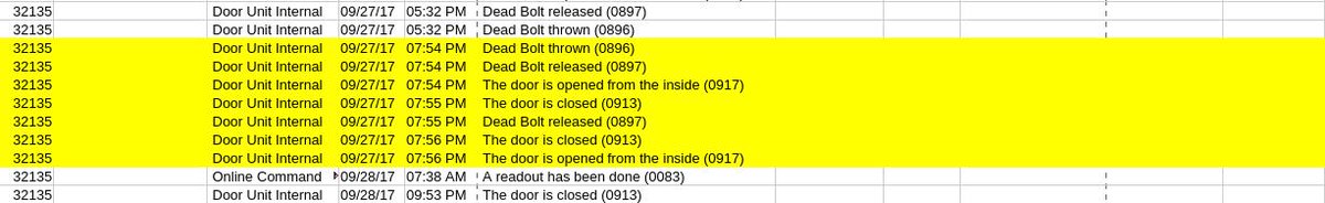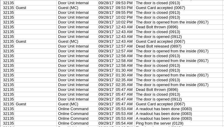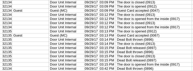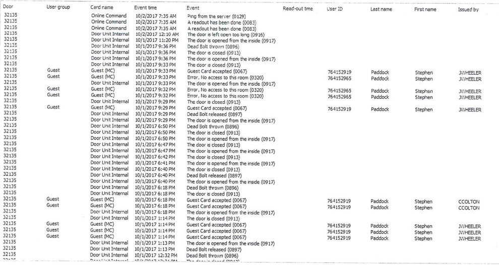 Additional candidates for these handoffs could be ~3:12-3:15PM and ~9:38PM on September 29th. Unfortunately, the data is only accurate down to 1 minute,but both these times seem to show unusual internal activity from both doors, which is odd if Paddock was alone.