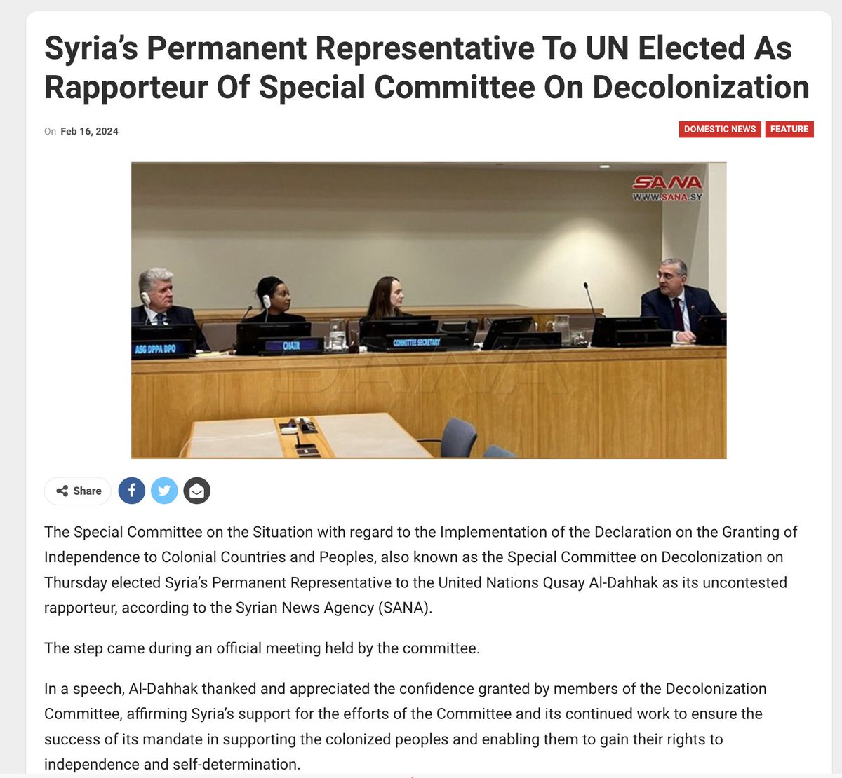 @antonioguterres, you even addressed the UN meeting of the Decolonization Committee—which you said was “crucial”—as they elected the dictatorial Assad regime to the position of Rapporteur. You didn't object. You legitimized the murderous Assad regime: /2 press.un.org/en/2024/gacol3…