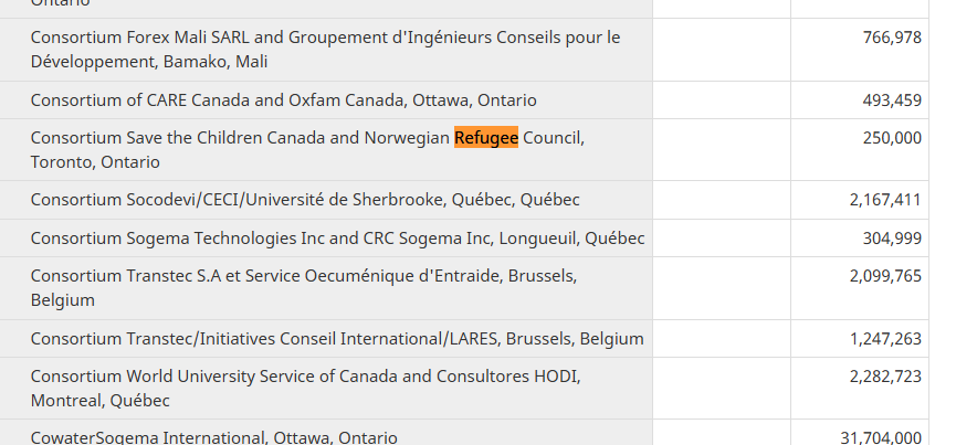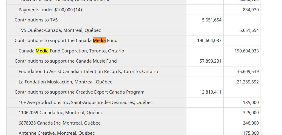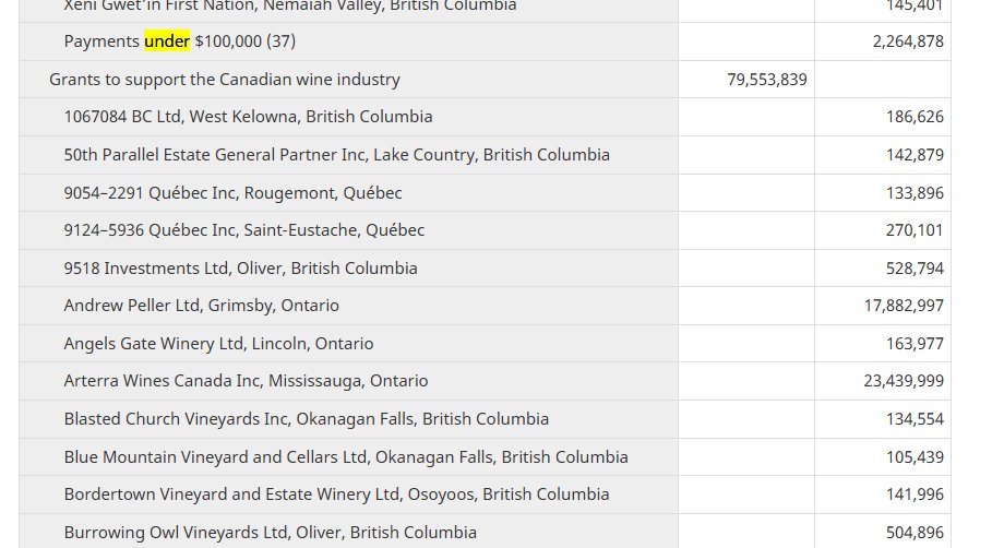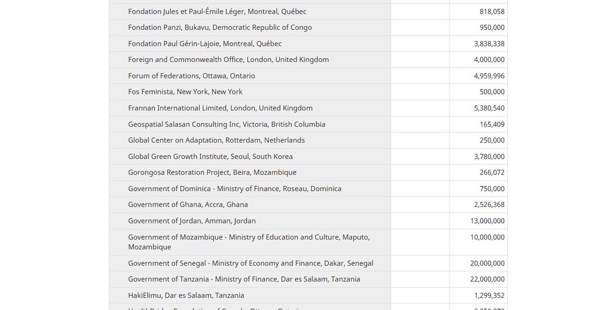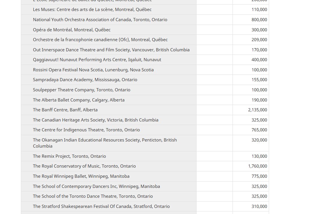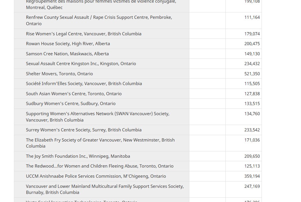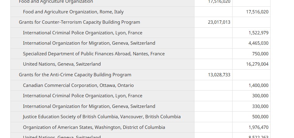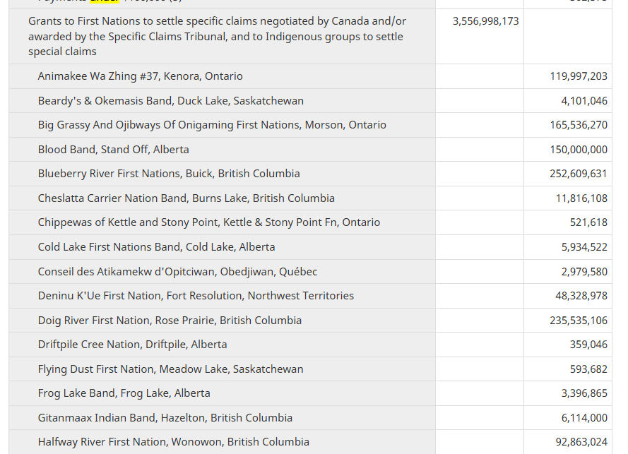 A virtually never-visited Public Accounts of Canada webpage titled: