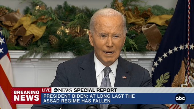 Biden se atribuye el derrocamiento de Asad y afirma que su caída es un "acto fundamental de justicia". Atribuyó el derrocamiento al apoyo de EEUU a Israel y Ucrania