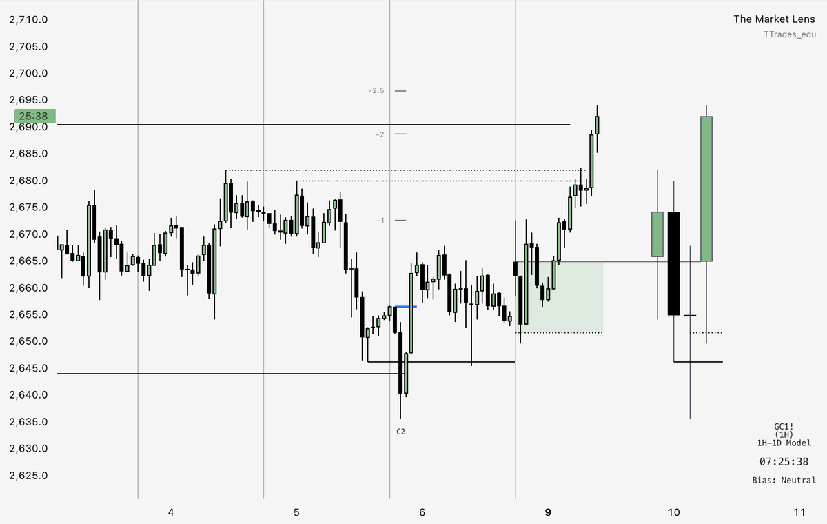Slap on the fractal model indicator and you can see the reversal targeting the other side of the range.